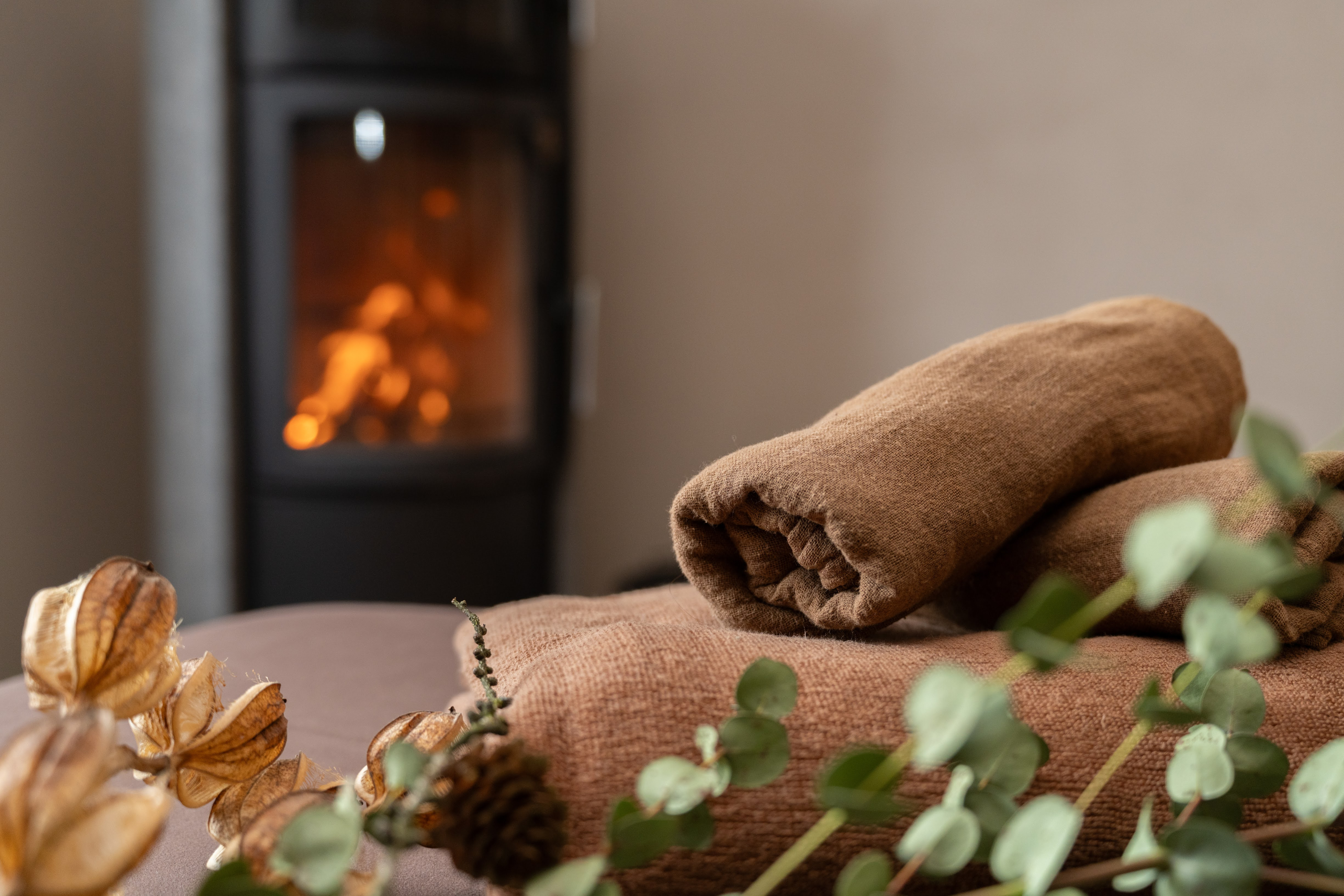 TAKIVIVAからスイートグラスの暖炉のあるプライベートコテージまで、冬の澄んだ空気で深呼吸をしながら散歩をして心身をほぐし、薪火を側に、アロマが香るマッサージ、ティータイムをお過ごしいただきます。